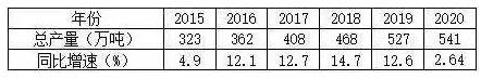 表1 “十三五”期間我國玻璃纖維紗產(chǎn)量變化情況