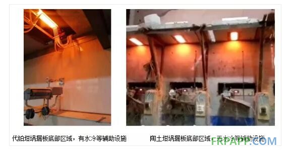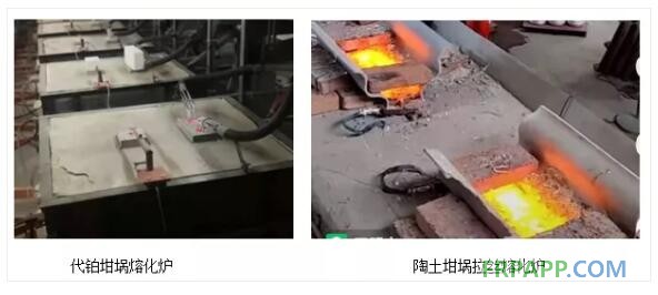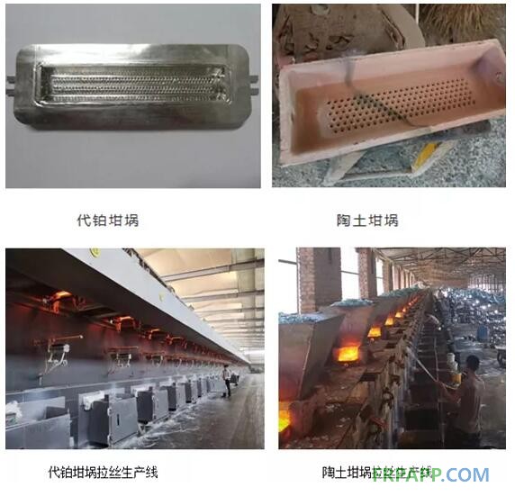 代鉑坩堝拉絲生產線中使用的是鉑銠合金漏板,因其使用壽命較長,會配有漏板磚并在漏板底安裝有水冷管等輔助設施。陶土坩堝拉絲生產線中使用的陶土坩堝漏板,其使用壽命一般為一天左右,需要頻繁更換,因此陶土坩堝漏板安裝簡易,漏板底無水冷管等輔助設施。