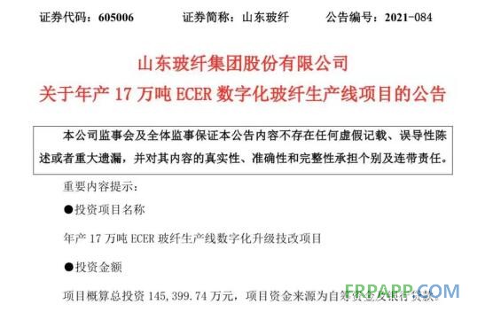 山東玻纖:擬實施年產17萬噸ECER玻纖生產線數字化升級技改項目