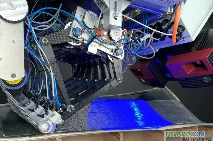 通過開展FlexProCFK和AutoBLADE項目研究,德國萊布尼茨-漢諾威大學及其合作伙伴正在為制造復雜的CFRP部件而開發(fā)一種安裝在機器人上的鋪層系統(tǒng)。