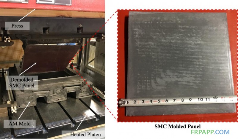 研究人員們首先定義了用于成型SMC的模壓模具對(duì)性能的要求,包括能夠耐受130~150℃的模溫以及13.8 MPa的成型壓力。
