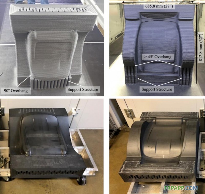圖5 采用CF/PPSU 材料打印的(上)及機(jī)加工后的(下)座椅靠背模具半模(圖片來自O(shè)RNL)