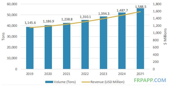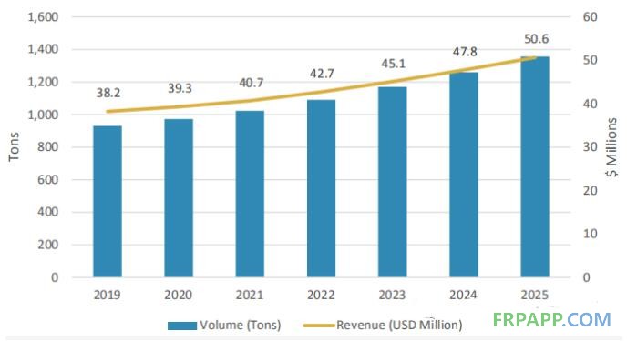 圖7 2019-2025年回收碳纖維市場(chǎng)規(guī)模