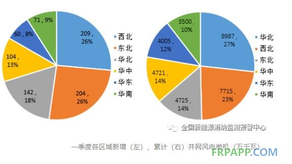 一季度,北方地區風電新增裝機占全國70.2%,同比增加23.8個百分點。