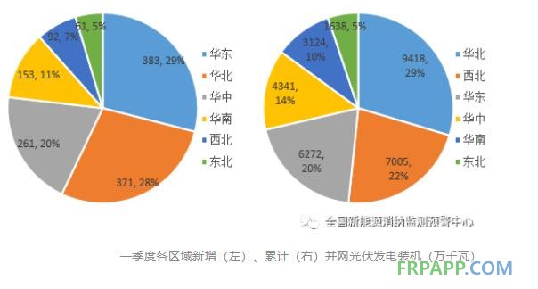 風電開發呈現向北方地區轉移的趨勢,分布式光伏裝機保持快速增長。一季度,北方地區風電新增裝機占全國70.2%,同比增加23.8個百分點。分布式光伏新增裝機同比增長192%,占新增光伏裝機總量的67.1%。