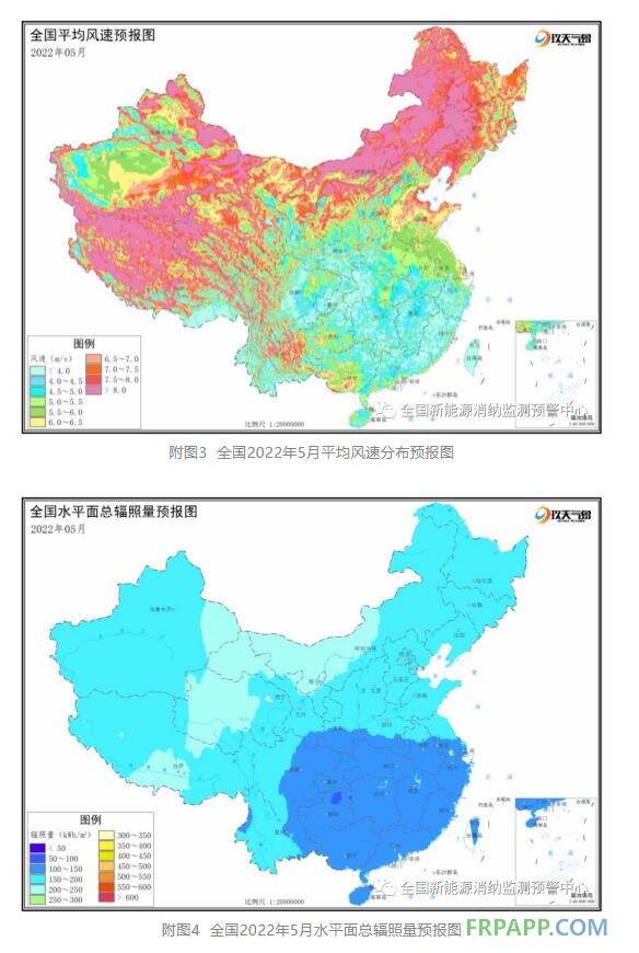 二季度全國大部地區平均風速隨月份增加呈減小趨勢,平均水平面總輻照量隨月份增加呈增加趨勢。