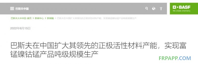 6月15日,巴斯夫在其官網上宣布由巴斯夫在中國控股的合資公司(巴斯夫持股:51%;杉杉股份持股:49%)——巴斯夫杉杉電池材料有限公司(以下簡稱巴斯夫杉杉)正在擴大其在湖南長沙和寧夏石嘴山基地的電池材料產能,以滿足當地和全球快速增長的電動汽車(EV)市場需求。