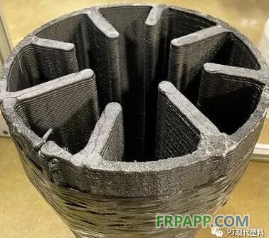 在MDF,ORNL繼續(xù)優(yōu)化材料的流動性能,采用RAM系統(tǒng)構(gòu)建示范部件。利用RAM打印機開展的其他研究包括與MVP合作的一個項目,即將RAM打印系統(tǒng)與一臺MVP的實驗室規(guī)模的纖維纏繞機整合在一起,并安裝在MDF。該項目還涉及使用RAM打印機打印示范件,然后在固化的3D打印部件周圍纏繞纖維,以此通過添加材料來加強部件。ORNL還在與波音公司合作一個項目,即采用RAM 系統(tǒng)3D打印模具。