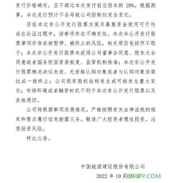 10月24日,中國能建發布公告稱,擬募集資金150億元用于以新能源為主的新型綜合能源項目,包括光伏、風電、氫能、儲能等新能源一體化、專業化項目,新能源工程施工項目、新能源重大裝備采購,以及生態環境治理、新型基礎設施等項目。