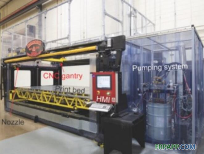 熱固性增材制造(TSAM)的開發工作目前由ORNL、密西西比州立大學、MVP和Polynt共同承擔。TSAM的一個關鍵特點是,可泵送液體在固化周期中與先前的珠子和基材表面發生化學反應。這種層間的化學反應是TSAM相對于熱塑性塑料的主要優勢之一。熱塑性塑料沒有化學鍵合,只是通過熔合進行機械連接。