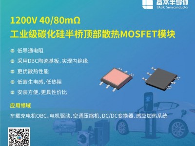 針對新能源汽車的應用需求,BASiC™基本公司研發推出符合AEC-Q101認證和PPAP要求的1200V 80mΩ和40mΩ 的碳化硅MOSFET,可主要應用在車載充電機及汽車空調壓縮機驅動中。