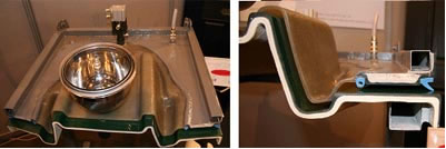 LRTM的最大優勢在于其模具生產成本的低廉性,費用大概只有常規RTM模具的一半,但模具使用壽命也低于RTM模具,適合年產1000件左右的產品。 LRTM工藝所生產的產品尺寸可以比傳統RTM大,通常產品小到相當于一個藍球帽,大到長