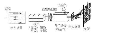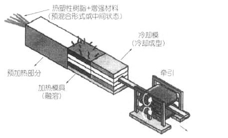 (2)模具方面熱固性塑料拉擠:在模具中通過加熱固化;熱塑性塑料拉擠:在模具中通過冷卻固化,并且模具中有加熱裝置,保證纖維與樹脂分散均勻。
