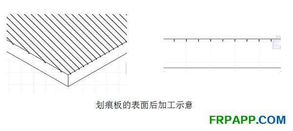 劃痕切割方式是采用表面劃線(淺的刀具切刻方式,與原先切割方式夾角大約75度)。此劃痕切割處理可用于上文提到的所有表面處理,讓樹脂透過泡沫分塊,避免面層樹脂的不足。JFC公司所有密度低于200kg/m3的芯材都可以進行了此種劃痕加工。