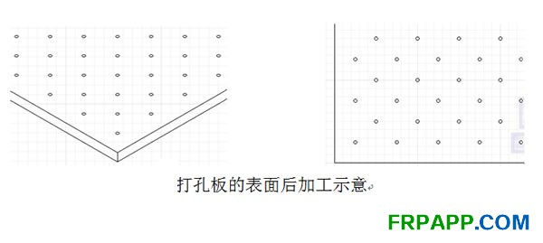 按照50 x 50mm(標(biāo)準(zhǔn))的正方形角上打孔或沖孔,穿透整個材料厚度,正方形中間也開一個孔。開孔,與表面開槽和/或輪廓板芯材表面處理結(jié)合使用,在“從上向下”導(dǎo)流過程中,能夠讓樹脂流入鋪層的模具一側(cè)(樹脂注入管道安裝非模具一側(cè))。