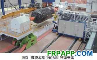 1.1 帶纏繞成型的國內外研究現(xiàn)狀帶纏繞成型技術隨著計算機技術、信息技術、控制技術的發(fā)展,在功能方面不斷擴大。從國外來看,美國已將帶纏繞成型工藝應用于型號研制:MD-2固體火箭發(fā)動機噴管部件中的13個零件,“侏儒”導彈的發(fā)動機噴管都是通過纏繞成型;歐洲、日本也在航天器、武器研制等領域廣泛地應用帶纏繞成型工藝:歐洲“阿里安”火箭的助推器噴管,法國M51導彈的殼體,日本M-3S2、H-I、H-H火箭的助推器噴管都在使用纏繞成型的復合材料。圖3所示為纏繞成型中的M51導彈殼體。