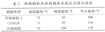 (3)CYD128、環氧樹脂A可以在相同溫度下發生共固化反應。混合樹脂體系為中溫固化體系,體系放熱溫度區間為54℃,放熱緩和;