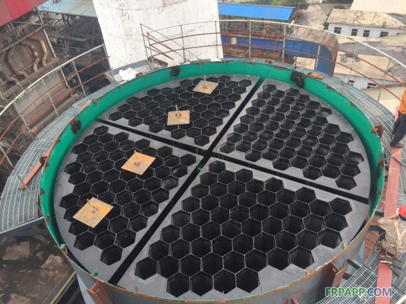 蜂窩式阻燃導電玻璃鋼(C-FRP)陽極管是蜂窩式導電玻璃鋼WESP關鍵組成部分之一,其具有結構緊湊、尺寸精準、最大限度利用空間、管壁內/外表面都能有效利用、能在制造廠直接制作和簡單安裝等特點。陽極管所用的C-FRP玻璃鋼典型的鋪層結構從內到外依次為:1層碳纖維表面氈、2層短切氈、3層玻璃纖維布以及1層玻璃纖維表面氈,樹脂采用阻燃乙烯基樹脂,其中含有高導電的導電劑。C-FRP導電玻璃鋼陽極管最重要的性能要求就是在具有良好力學性能的同時具有優異的耐腐蝕性能、阻燃性能以及均勻的導電性能。由于復合材料不同于金屬材料的特殊性,其原材料的選擇至關重要