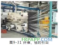 拉擠設備中,內抽頭玻璃纖維粗紗配置在紗架上,其他增強材料(如連續氈、表面氈等)通常按切線方向有序放置在多層擱架上,引出時應盡量遵循平行原則,避免行走時出現交叉、錯亂。