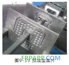 (1)預成型模具 在拉擠成型過程中,增強材料浸漬樹脂后(或被浸漬的同時),在進入成型模具前,必須經過由一組導紗元件組成的預成型模具,預成型模的作用是使浸漬后的增強材料進一步除去多余的樹脂,排除氣泡,逐步形成近似成型模腔形狀和尺寸,然后進入模具。通過預成型,增強材料逐漸達到所要求的形狀,并使增強材料在制品斷面的分布符合設計要求。
