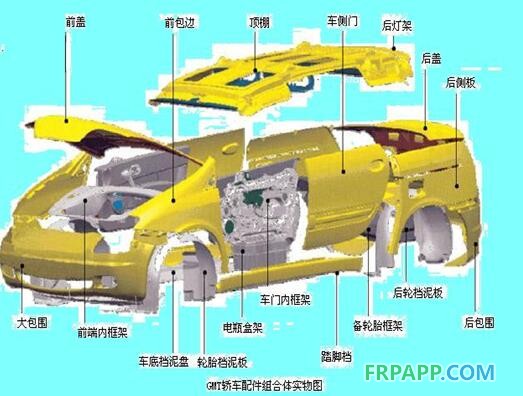 GMT是以連續玻璃纖維氈,或連續玻璃纖維針刺氈為增強芯材與改性聚丙烯復合而成的一種復合材料片材,其英文名為 Glass MatReinforced Thermoplastics。由于GMT具有材料密度低、成型周期短、沖擊韌性好以及可再生利用和貯存期長等顯著的優點,因此作為綠色環保輕質材料,從20世紀80年代起就已被歐美國家廣泛推廣應用,其中80% 被用于對輕量化要求最為迫切的轎車領域。目前GMT可取代的鋼制轎車零部件主要有:前端模塊框架、儀表板骨架、抗撞保險杠、座椅骨架、蓄電池托架、備胎倉、行李架、車身底部擋泥板、引擎隔聲罩等。近年來,在我國生產的汽車中也有很多GMT 汽車零部件開始得到應用。