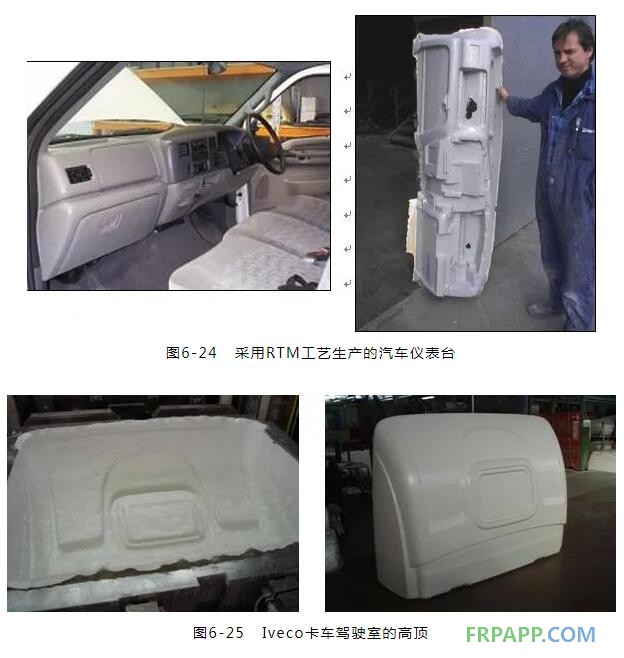 意大利的Sistema用RTM工藝為為Iveco車型配套制造箱式貨車、卡車和教練車的車身、車頂,車頂最大達到14m2。他們認為,其優點是具有較好的空氣動力學特性,在85km/h的車速下,減少空氣阻力20-25%。