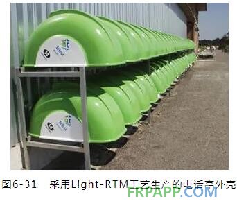圖6-32為北京玻鋼院復合材料有限公司生產的RTM油站地下儲油罐井蓋,其特點是重量輕,承載能力高,最大可承載40噸,是比較有代表性的復雜夾芯加筋結構整體成型產品。