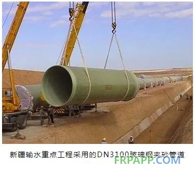 目前,美國各地用的纖維纏繞管道總長占整個運輸工具的三分之一,所負(fù)擔(dān)供應(yīng)的能量(包括石油、天然氣、煤、電)占全國需用量的一半以上。在我國工業(yè)生產(chǎn)中,纖維纏繞管道同樣已被大量地采用。圖7-35為新疆某輸水重點工程成功采用的Ø3.1m玻璃鋼管,單管長12m,重16噸,工程一次安裝通水成功無泄漏。