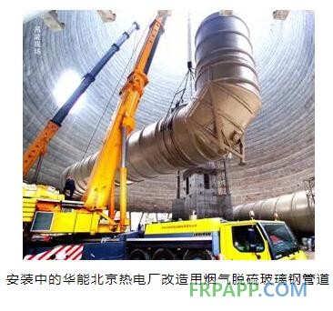 2006年北京高碑店電廠煙塔合一除硫系統(tǒng)中,煙氣管道采用ECR纖維增強乙烯基酯樹脂制作的玻璃鋼管,直徑達7m(如下圖所示),以立式纏繞機與臥式纏繞機現(xiàn)場制造,質(zhì)量甚得好評。