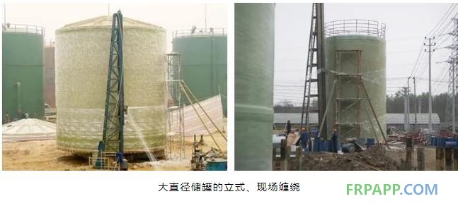 目前纏繞玻璃鋼儲罐可達的最大直徑為25m,以儲存2.5萬噸原油計算,儲罐的高度達63.7m,因此多采用立式、現(xiàn)場纏繞成型。