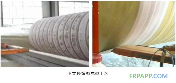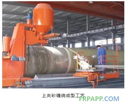 2004年由衡水華成玻璃鋼有限公司研制成功,有自主知識產(chǎn)權(quán)。這種工藝是用加砂裝置將石英砂和樹脂攪拌均勻,通過輸砂平臺,用兜砂布把石英砂從模具下方緊緊裹到管芯模上,通過機械碾壓裝置對夾砂層進行同步碾壓。這種工藝的優(yōu)勢有以下幾方面: