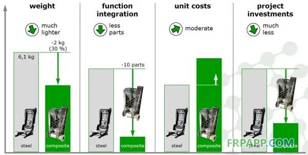 FuPro座椅靠背示范件的設(shè)計(jì):在一個(gè)一體化的輕量化結(jié)構(gòu)中整合了復(fù)合材料的空心型材、有機(jī)板材和注塑成型件