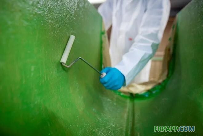 (3)膠衣層的厚度應精確控制在0.3~O.5mm之間,通常以單位面積所用的膠衣質量來控制,即膠衣的用量為350~550g/㎡,這樣便能達到上述要求的厚度。