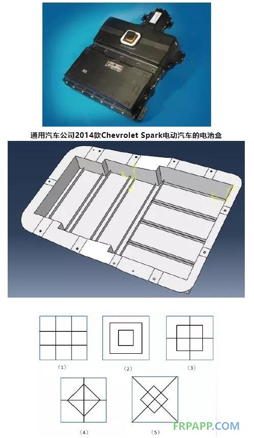 加強筋分布形式:(1)“井”型(2)“回”型(3)“田”型(4)中框型(5)對角框型