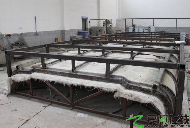 模具完成后一般都需要加固作為支撐,以防止模具反復使用過程中造成變形。加固的材料一般采用金屬方管、角鋼、木條等。以減少模具形變和使用方便為原則,材料的分布根據模具的大小進行合理布局。鋼架焊接到位后,采用產品樹脂和玻纖布將其固定于模具之上。