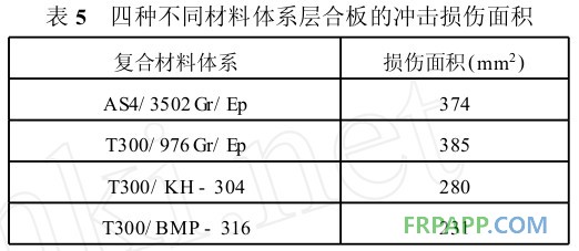 2.2 不同復合材料體系對層合板沖擊損傷的影響