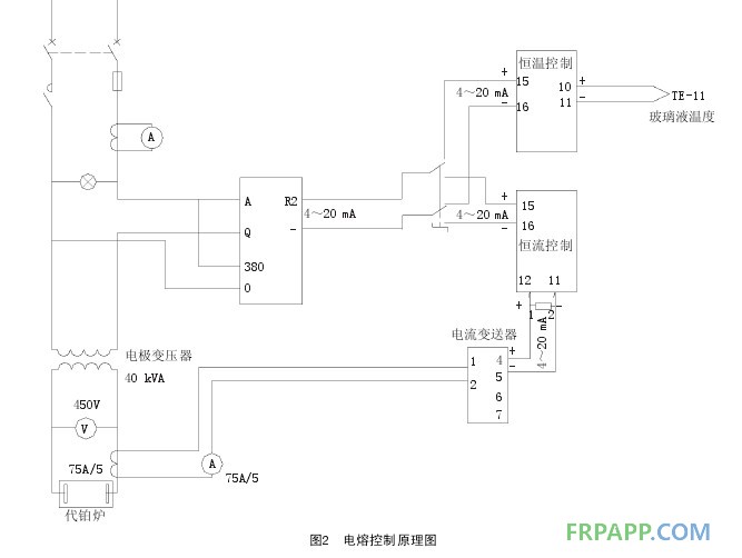 和漏板控制方案一樣,本控制方案同樣采用智能控制儀、電壓調(diào)整器、電流變送器等,根據(jù)實(shí)際要求恒流控制儀表都采用4位有效位數(shù)的控制儀表,以降低成本,電流采樣使用獨(dú)立的有效值電流變送器。