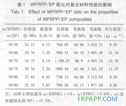 2.1 WFRPP/EP配料比對復合材料性能的影響
