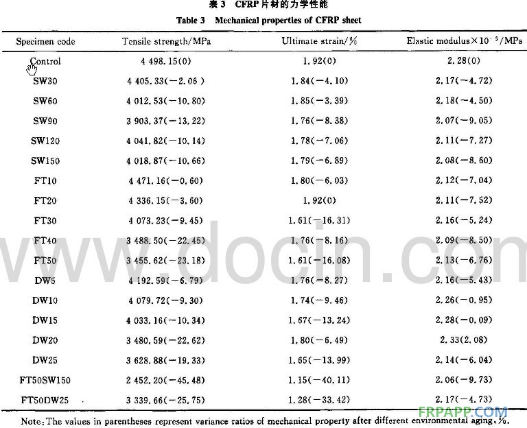 3.在海洋工程應(yīng)用中,必須考慮CFRP片材的耐久性,尤其應(yīng)對(duì)其抗拉強(qiáng)度進(jìn)行折減。
