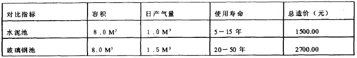 水泥池的建造為個體化生產(chǎn),受建池時環(huán)境條件、施工技術水平及材料影響較大:而玻璃鋼沼氣池的建造為工廠化生產(chǎn),有統(tǒng)一標準、統(tǒng)一工藝,受建池時環(huán)境條件及施工技術影響較小。