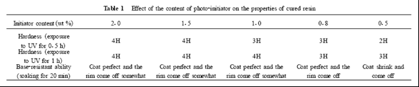 綜上所述,選用適當(dāng)配比的不飽和聚酯,與環(huán)氧樹脂反應(yīng)得到的感光樹脂,其光固化膜的耐堿性大大提高,表面硬度由2H提高到4H。固化體積收縮率由7%下降到0.8%,對(duì)底材的附著力明顯增加,且熱失重率降低了6.8%。擴(kuò)展了它在許多方面的用途。