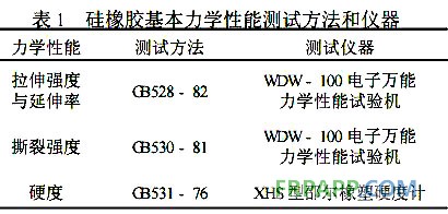 硅橡膠基本力學性能測試方法及使用主要儀器見表1。