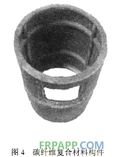 為了進一步考察硅橡膠軟模在制備復合材料上的可行性,本文設計了一個具有典型內部復雜結構的構件(圖1所示),初步澆注成型了硅橡膠軟模(圖3所示),并用軟模輔助RTM成型了碳纖維/環氧復合材料構件(見圖4所示),軟模外形完整、尺寸準確,而且利用軟模自身柔軟的特點解決了內部復雜構件的一次整體成型困難的問題,制備出了外形完整的復合材料構件,所制備的軟模經數次高溫、高壓使用后,壓縮變形很小,性能無明顯下降,這也充分證明了COCA31-11可以作為軟模輔助RTM工藝中軟模材料使用。