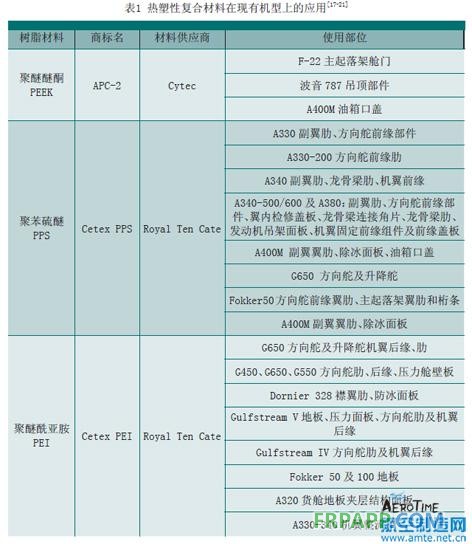 1 高性能熱塑性復(fù)合材料在大型客機(jī)上的應(yīng)用狀況