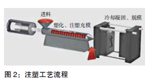 長纖維熱塑性復合材料多采用注塑成型加工工藝,即將受熱融化的材料由高壓射入模腔,經(jīng)冷卻固化后,得到成形品的方法。
