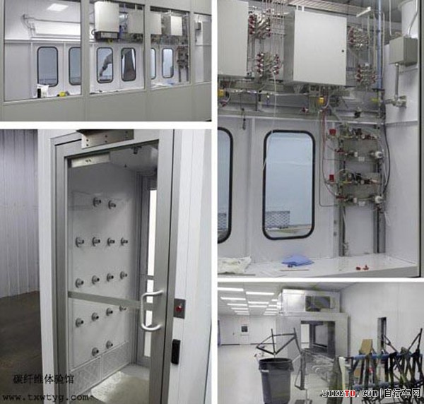 已經(jīng)完成的車架會(huì)被裝夾在特制的碳纖夾具上,送入固化爐中進(jìn)行固化處理。夾具是用與車架相同的碳纖材料制作的,因此它們與車架有相同的熱膨脹率。這對(duì)于保證制造精度有很重要的作用,尤其是對(duì)自行車的制造精度要求越來越高的今天。在以前的生產(chǎn)過程中對(duì)精度要求沒有這么高,碳纖夾具又太貴,所以一直是使用金屬夾具,但是現(xiàn)在所有的車架都是使用碳纖夾具了。當(dāng)固化處理完成后,車架就可以從固化爐中取出,并且從夾具上取下來了。
