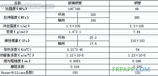 高壓玻璃鋼管(線管)與鋼管的性能比較如表1所示。