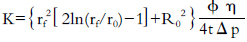 一般情況下,二維徑向流動前沿曲線為圓形或橢圓形,記錄樹脂流動前沿半徑和時間,根據以上公式計算滲透率。其示意圖見圖2。