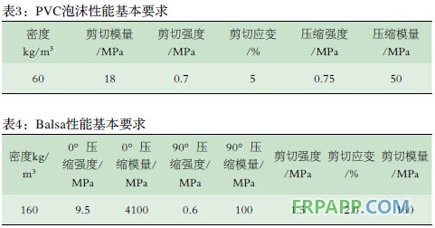 2.4.3 纖維增強復合材料芯材。由玻璃纖維和閉孔低密度泡沫組成,可以滿足葉片優化設計,降低葉片的重量和成本,尺寸穩定,密度均勻性能很好,提高葉片均勻性。芯材的選擇主要考慮三個方面的因素:力學性能(強度、剛度和密度)要求、工藝要求(承受的溫度、制品形狀、芯材的加工等)和價格。