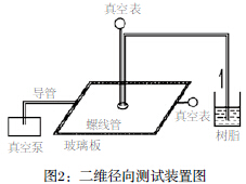 浸潤性通過增強材料的滲透率來表征。滲透率是綜合反映纖維滲透特性的參數,用來表征樹脂流過纖維織物的難易程度,是優化成型工藝和保證產品質量的關鍵。樹脂在纖維中的流動主要是樹脂在纖維束空隙之間的宏觀流動和樹脂在纖維單絲之間的微觀流動,受纖維孔隙率、樹脂粘度、纖維與樹脂的表面張力、溫度、注射壓力等影響。利用Darcy 定律,通過一維和二維面內徑向測量滲透率。
